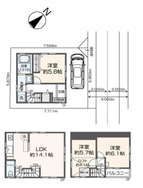 | 土地面積 | 44.9㎡(公簿) | 私道面積 | |