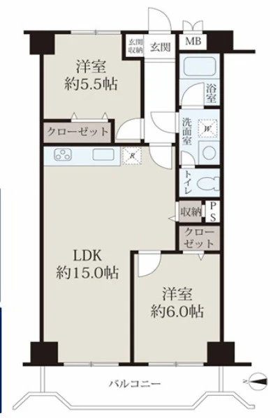 | 間取り | 2LDK | 間取り向き | (角部屋) |