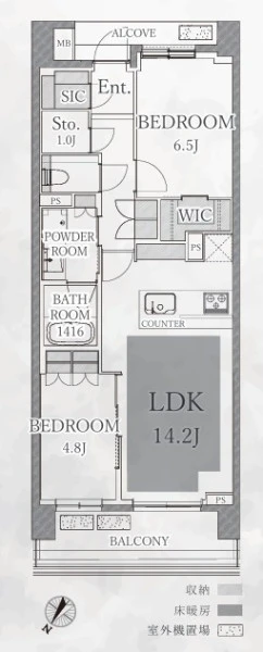 | バルコニー面積 | 8.48㎡ | バルコニー向き | 北西 |