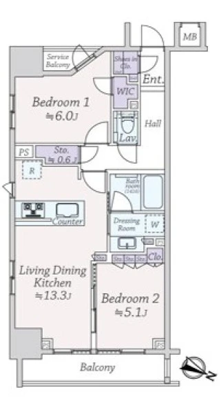 | 間取り | 2LDK | 間取り向き | |