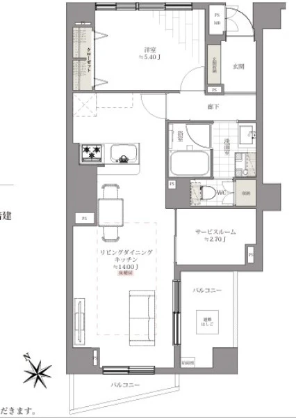 | バルコニー面積 | 7.2㎡ | バルコニー向き | 南西 |