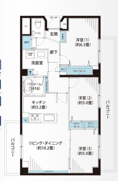 | バルコニー面積 | 17.4㎡ | バルコニー向き | |