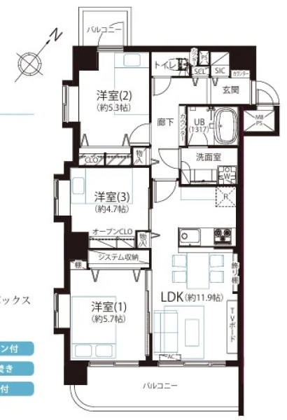 | 間取り | 3LDK | 間取り向き | (角部屋) |