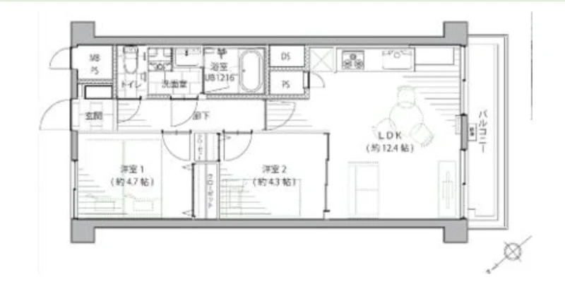 | 専有面積 | 51.43㎡(壁芯) | 建物構造 | 鉄筋コンクリート(RC) |