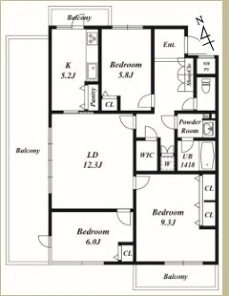 | 専有面積 | 94.86㎡(壁芯) | 建物構造 | 鉄筋コンクリート(RC) |