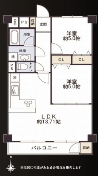 | 専有面積 | 54.82㎡(壁芯) | 建物構造 | 鉄筋コンクリート(RC) |