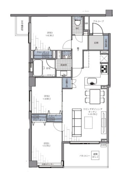 | 間取り | 3LDK | 間取り向き | (角部屋) |