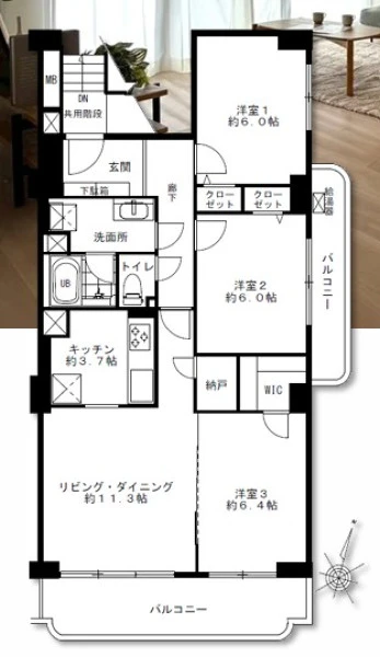 | 間取り | 3LDK | 間取り向き | (角部屋) |
