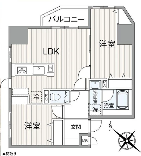 | 間取り | 2LDK | 間取り向き | (角部屋) |
