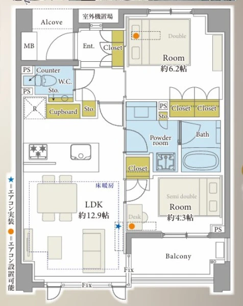 | 間取り | 2LDK | 間取り向き | |